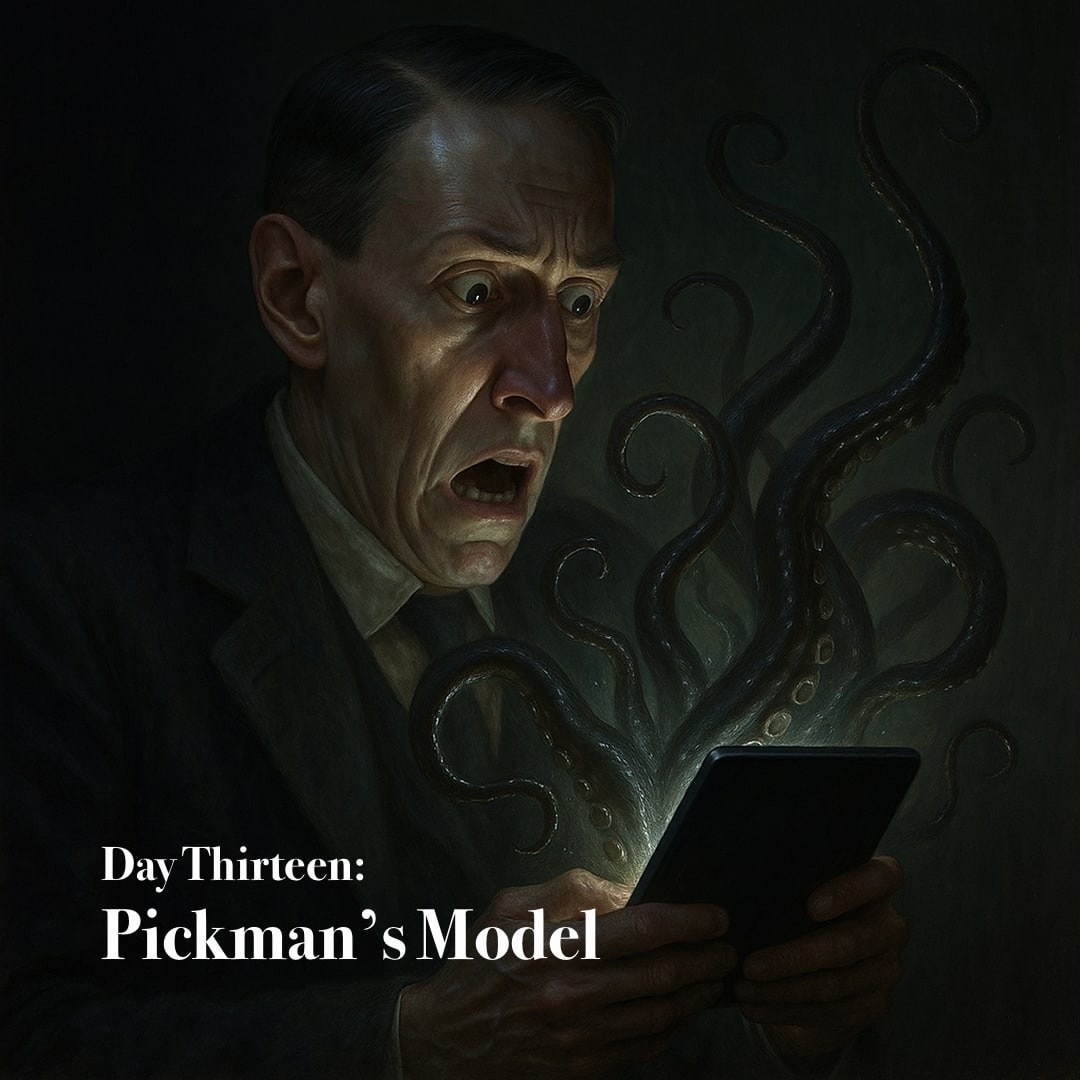 I have ever cherished H. P. Lovecraft’s sinister chronicle “Pickman’s Model”, not solely for the grim savor of its narrative, but because it entwined itself with a pastime of mine in years long past. In a session of The Call of Cthulhu, that dark game of dread imagination, I assumed the guise of Robert Pickman, brother to the accursed artist Richard. My Robert was a man of wealth and standing, who spoke but sparingly of his birth. He met his end beneath the knives of cultists, a glorious death steeped in the ichor of forbidden rites. Only later did I learn that our Keeper of Arcane Lore, lord of the tale and master of the dice, had never perused “Pickman’s Model,” nor many of the other eldritch writings of Lovecraft himself. The revelation astonished me, yet the game was no less delightful, even if my homage to that dire tale was lost in the shadows.