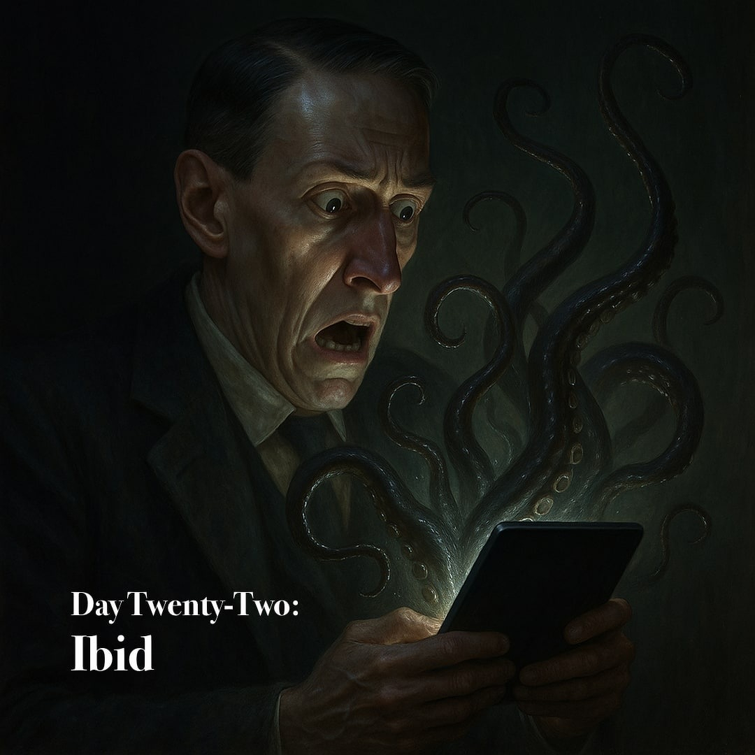 Once more, in this haunted season of October, I have resumed my ancient rite of reading one tale each night from the dread hand of H. P. Lovecraft. In this ritual I have stumbled upon forgotten works, strange and faint in their power, yet still whispering of outer gulfs and nameless terrors. Even the curious jest of “Ibid” carries a shadow of that unearthly genius which once dreamt beyond the veil.