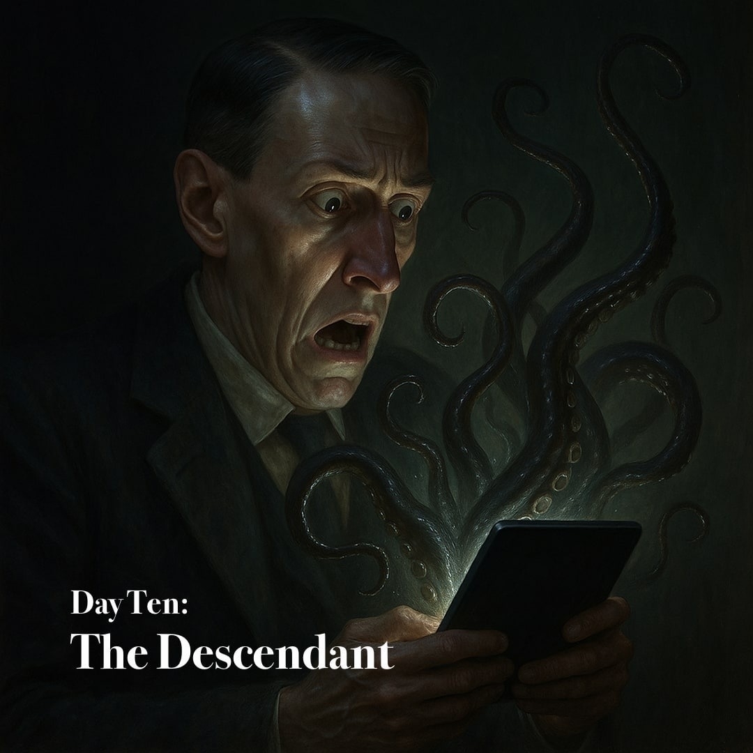 In my renewed observance of that grim October ritual, wherein I partake each day of one accursed tale from the hand of H. P. Lovecraft, I have come upon a truth both sobering and strange. Not every work born of his eldritch imagination breathes the full terror of the cosmic abyss. “The Descendant”, though steeped in the chill perfume of his favored themes, drifts rather as a spectral reverie, less a tale of horror than a murmured lament from beyond the veil of time.